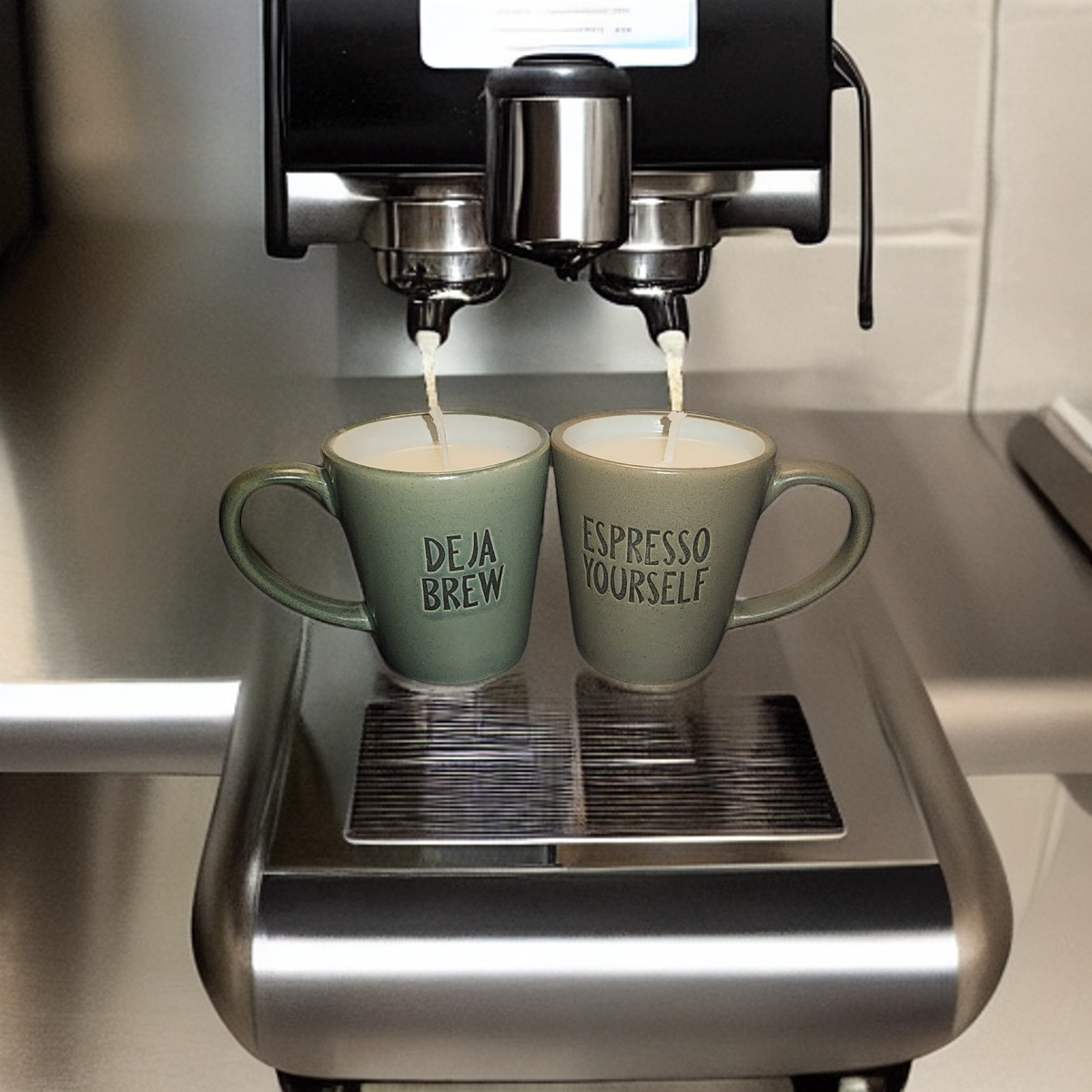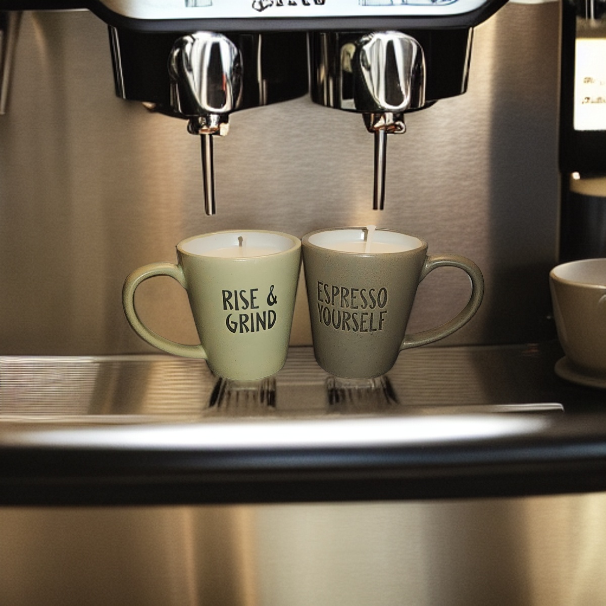 Set of 2 reusable espresso cups filled with 2oz soy candle.