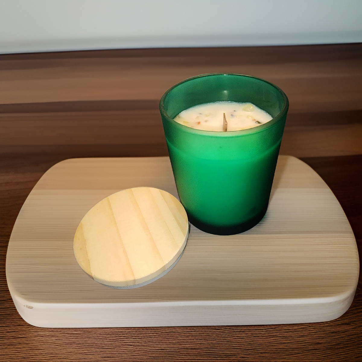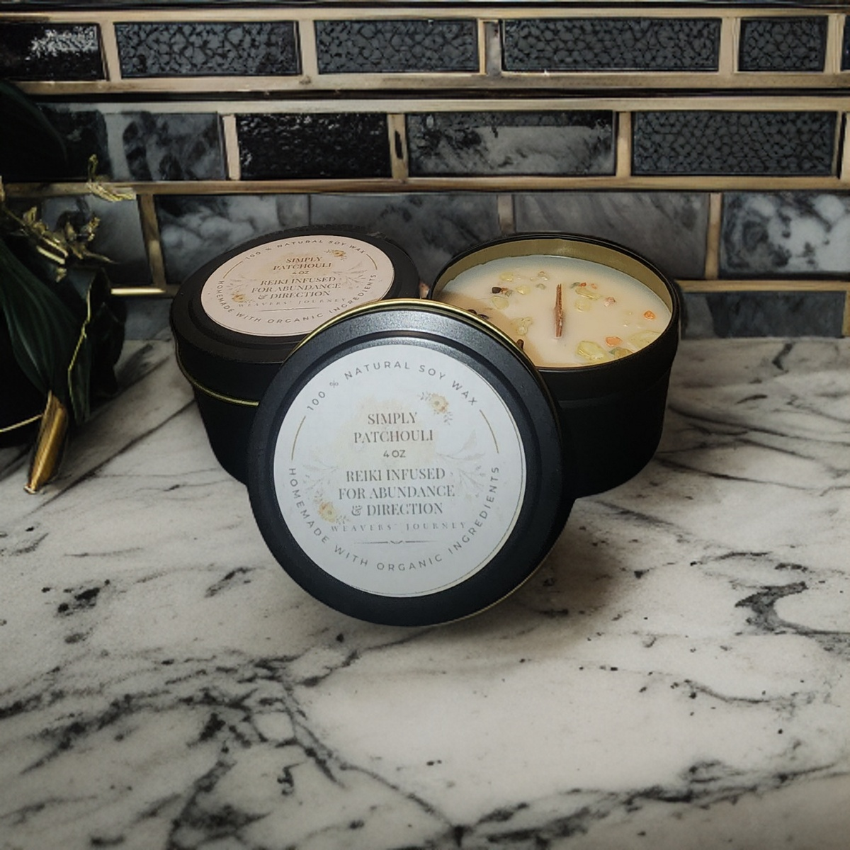 This candle is infused with natural crystal chips and natural essential oils including patchouli oil.